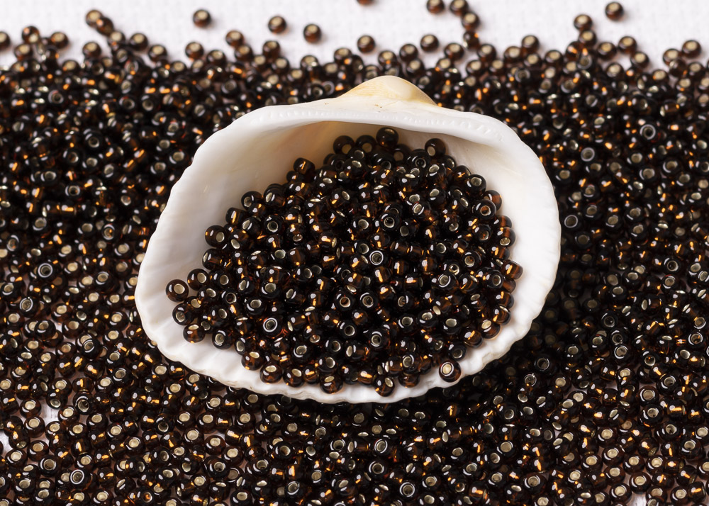 Бисер Чехия круглый 08/0 50 г 17140 прозрачный темно-коричневый с серебряным прокрасом