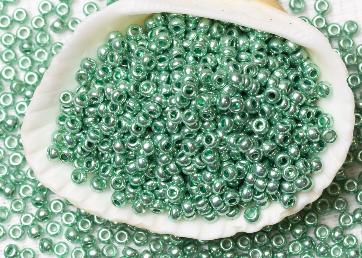Бисер Чехия круглый 08/0 50г 18558 зеленый металлик