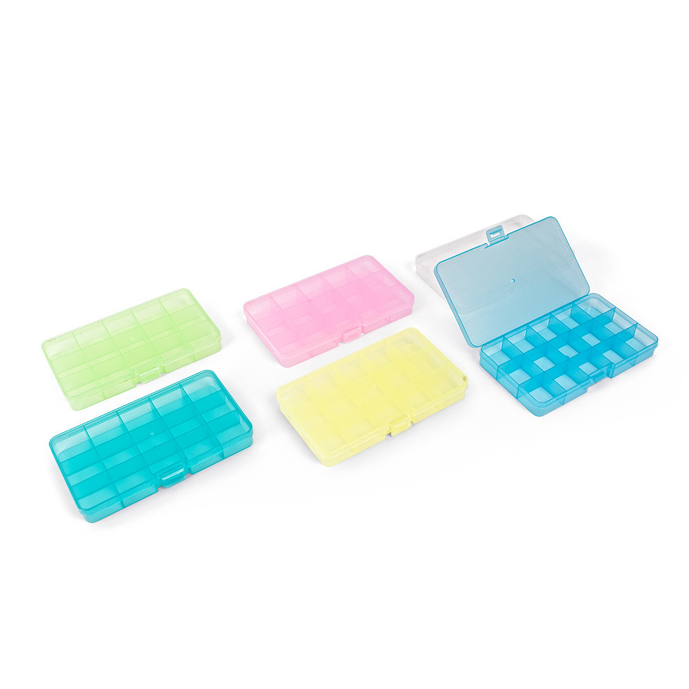 Коробка секционная прямоугольная, с защелкивающейся крышкой, 15 секций.. Предназначается для хранения мелочей для рукоделия и шитья, канцелярских принадлежностей. Длина, см: 17. 7Ширина, см: 10. 2Высота, см: 2. 3Сообщить о неточности в описании