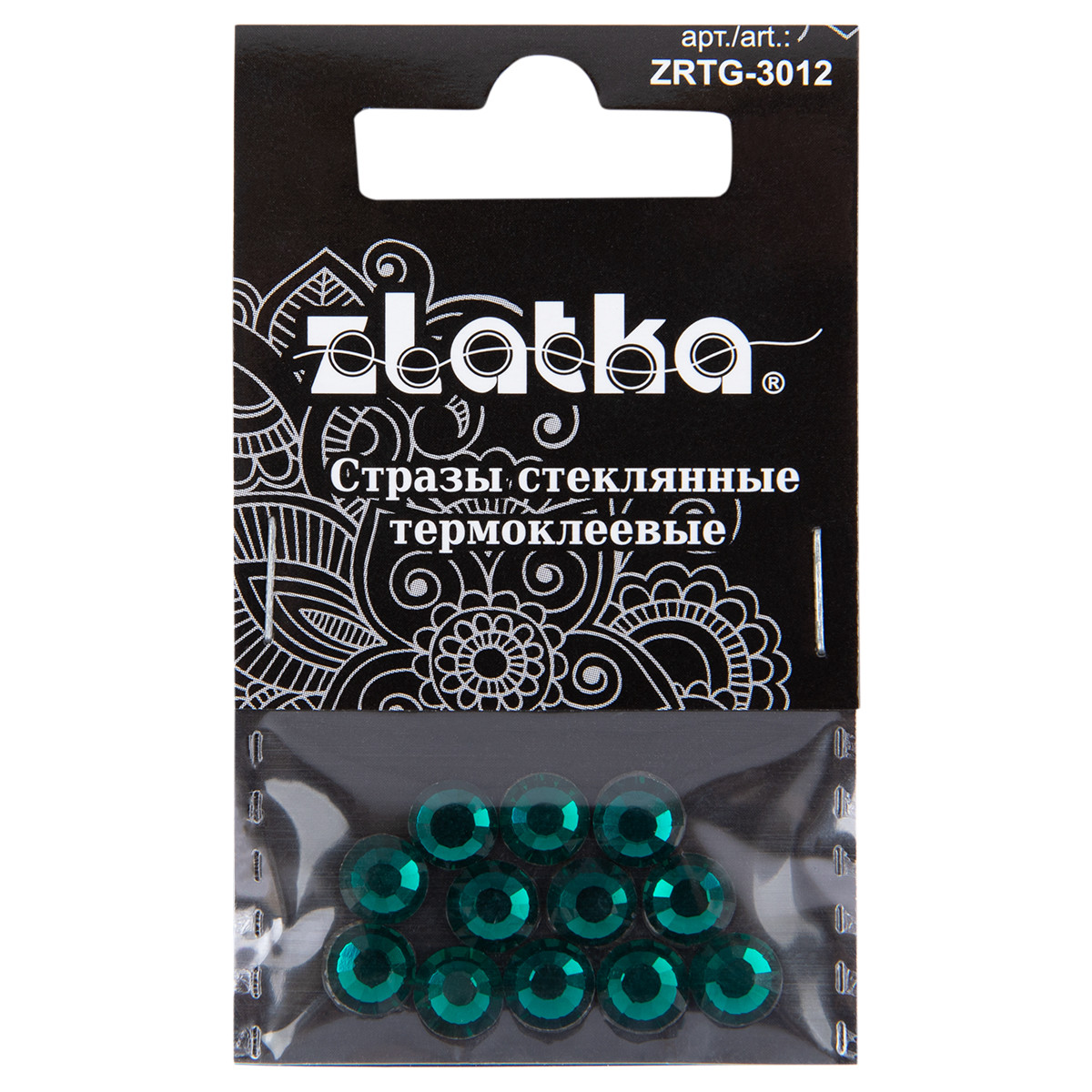 Страз клеевой " Zlatka" ZRTG- 3012 SS30 цветные 6. 5 мм стекло 12 шт в пакете с картонным еврослотом №10 изумрудный ( Emerald)