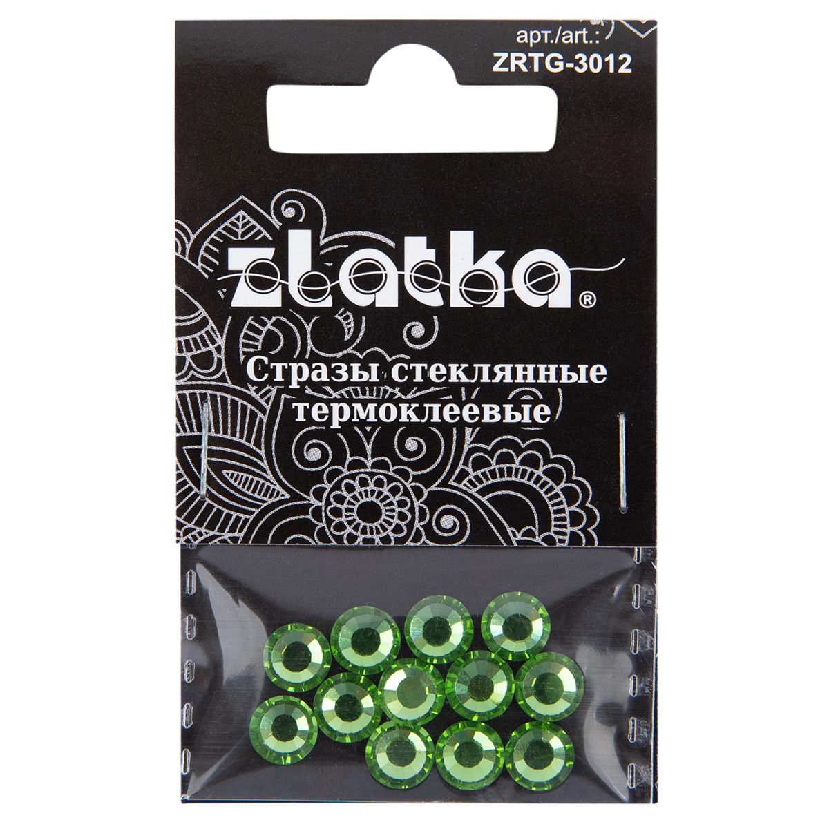 Страз клеевой " Zlatka" ZRTG- 3012 SS30 цветные 6. 5 мм стекло 12 шт в пакете с картонным еврослотом №11 салатовый ( Peridot)